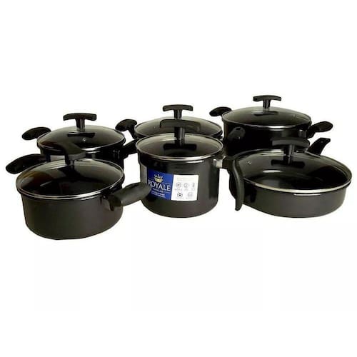 Jogo 6 Panelas Cerâmica Indução Tampa De VidroConjunto de Panelas 6 Peças Aço Fundido com Cerâmica e Tampa de Vidro inquebrável Preta - RoyaleSua Cozinha merece produtos de alta QualidadeO Conjunto possui revestimento especial em vitro cerâmica, confeccionada para resistir as temperaturas e evitar contaminação por germes e bactérias.Cozinha eficientemente e mantém o calor economizando até 40% do gás.Fácil de Limpar e permanecem bonitas por mais tempo.Material: Aço Ferromagnético Fundido a 850.C com Cerâmica de Alta Qualidade.Pode ser levado ao Freezer, Lava Louças, Fogão A Gás, Elétrico, por Indução e a Lenha.Composição:1 Caçarola com tampa de vidro 25cm1 Caçarola com tampa de vidro 22cm1 Frigideira com tampa de vidro 24cm1 Panela com tampa de vidro 18cm1 Panela com tampa de vidro 20cm1 Leiteira com tampa de vidro 16cmCaracterísticasAmbiente: CozinhaModelo / Tipo: Conjunto de PanelasMedida Externa AxLxP :23.5x40.5x66cmMaterial: Aço, CerâmicaCor: PretoCabo: BaquelitePeso: 5klsTipo de Uso: Dia a DiaQuantidade de Peças: 6Garantia: Defeito de Fabricação