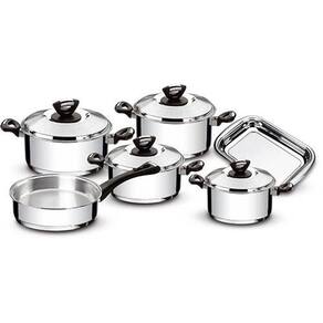 Os amantes da culinária confirmam, além de alimentos saborosos, uma deliciosa refeição precisa ser preparada em utensílios de qualidade. O Jogo de Panelas Tramontina em Aço Inox Fundo Triplo com Cabos e Alças de Baquelite 6 Peças conjuga praticidade e em toda sua linha. Totalmente feitas de aço inox, as panelas não soltam nenhum resíduo nos alimentos, mantendo-os saudáveis. O fundo triplo (aço inox alumínio aço inox) distribui o calor uniformemente, o que proporciona um cozimento mais rápido. Altamente duráveis, as panelas mantêm as características , preservando a beleza, a higiene e a durabilidade do material. Os cabos e alças possuem protetor de chamas e não aquecem, evitando que queimem quando a chama não estiver centralizada no fundo da panela. As tampas, com encaixe perfeito, têm saída de vapor para que a preparação da sua receita seja totalmente segura. O conjunto pode ser utilizados nos fogões: gás, elétrico, vitrocerâmico e indução e para limpar, basta colocar na máquina de lavar louça. O Jogo de Panelas Tramontina em Aço Inox Fundo Triplo com Cabos e Alças Baquelite com acabamento em brilho é perfeito para quem gosta de sofisticação e praticidade na cozinha.
