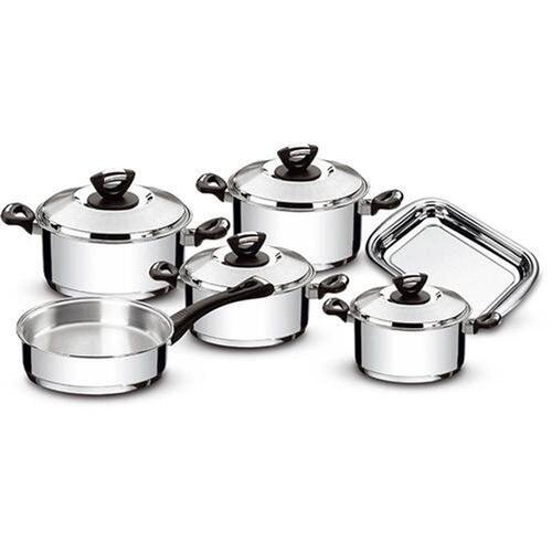 Jogo de Panelas Tramontina Solar Baquelite em Aço Inox Fundo Triplo com Cabos e Alças de Baquelite 6 Peças