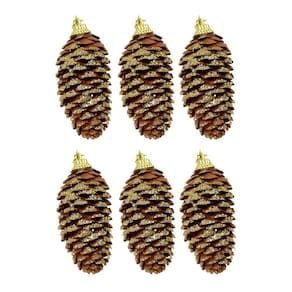 Kit 6 Pinhas Naturais Natal Glitter Dourado 8,5cm
