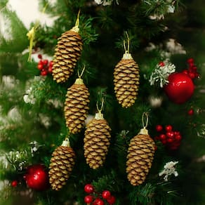 Conteúdo: 1 jogo com 6 pinhas natalinas com cordão para pendurar