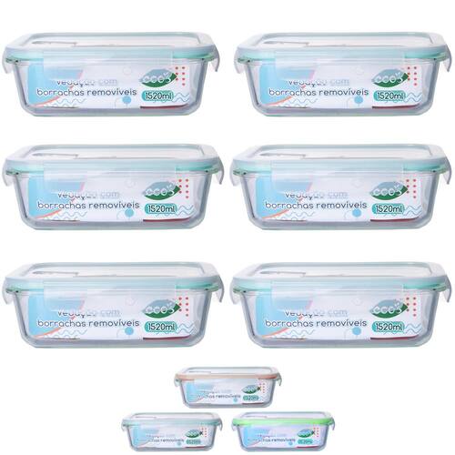 6 Pote de Vidro 1520ml com Tampa Hermética