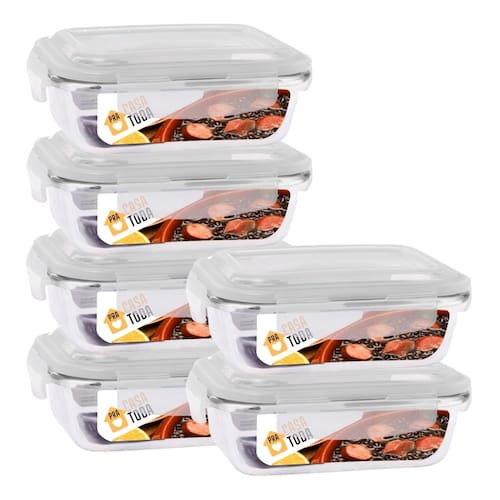 Jogo 6 Potes Hermeticos Vidro Retangular Tampa Travas 640ml - Jogo de Potes Herméticos de Vidro