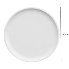 Garantia: 90 dias / Peso: 2,28g / Cor predominante: branco / Referência: 7891658902838X6 Dimensões de cada prato: 18,5cm (D) x 2cm (A); Tipo: sobremesa; Formato: redondos; Conteúdo: 6 pratos; Material: 100% porcelana.