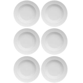 Garantia: 90 dias / Peso total: 3,732kg / Cor predominante: branco / Ref: 7798139704434; Dimensões de cada prato: 23,5cm (D) x 4cm (A); Diâmetro interno de cada prato: 16cm; Capacidade de cada prato: 350ml; Material: porcelana; Formato: redondo; Tipo: fundo; Conteúdo: 6 pratos fundos.