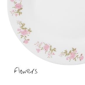 Prato Raso de Vidro Branco Flowers Flores Pink 25,5cm Em Casa Tem