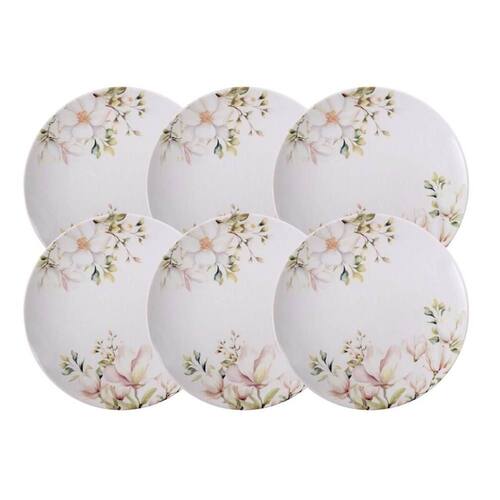 Jogo 6 Pratos Rasos Porcelana Decorada 28cm Tramontina Magnólia Mesa Posta Eventos.