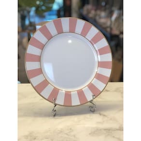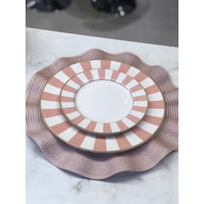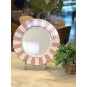 Jogo 6 Pratos Rasos Stripe Rosa 1ª Classific.