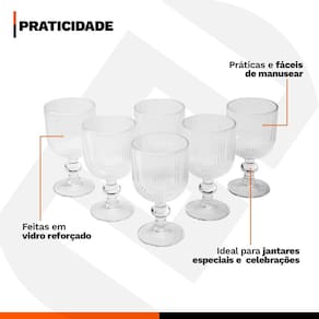 Jogo 6 Taças 240Ml Vidro Transparente Para Vinho Agua Sucos