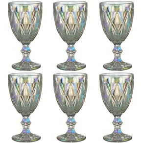 Jogo 6 Taças de Vidro 325ml Diamond Rainbow Metalizada Lyor para Servir Água Vinho Suco.