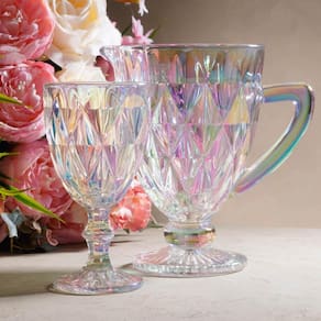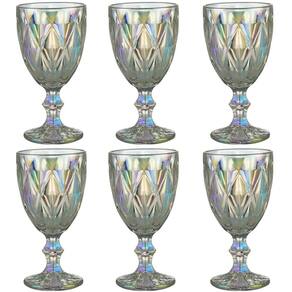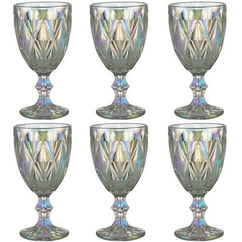 Jogo 6 Taças de Vidro 325ml Diamond Rainbow Metalizada Lyor para Servir Água Vinho Suco.