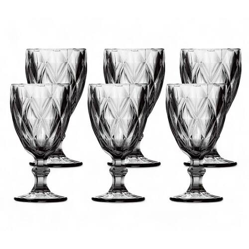 Jogo 6 Taças De Vidro Diamond Bico Abacaxi 325Ml Fumê Cinza