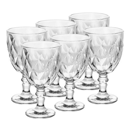 Jogo 6 Taças de Vidro Diamond Clear Vinho Suco Água 300ml