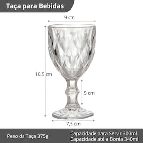 CONTEÚDO 01 - Jogo 6 Taças de Vidro Diamond Clear Vinho Suco Água 300ml