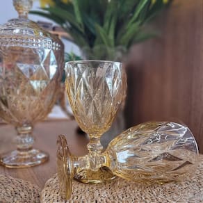 Conteúdo da embalagem: -06 unidades Taça Diamond Diamond Âmbar Golden 340ml Capacidade: 340ml Composição: Vidro Marca: Vivaflor Decor