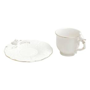 Xícara de Café Porcelana Birds Branca Fio Dourado Pássaro com Pires 100ml Wolff