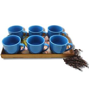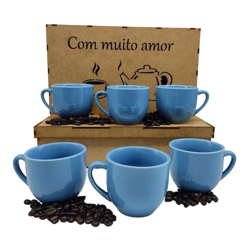 Jogo 6 xicaras 170ml porcelana para café chá caixa mdf azul Jogo 6 xicaras de porcelana para café chá 170ml caixa em mdf decorada