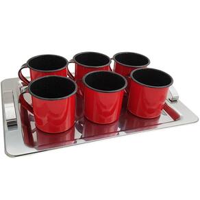 Jogo 6 Xícaras Café Caneca Esmaltada 400ml Caneca de Agata Vermelho