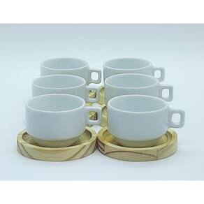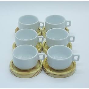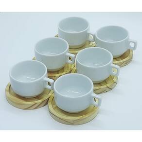 Jogo 6 xícaras café/chá hotel 100ml empilháveis com pires de Pinus - Porcelana branca Peças de porcelana feitas de material de alta qualidade, queimados em alta temperatura, o que os torna fortes, resistentes e com alto brilho, e deixa qualquer ambiente mais bonito e moderno. Nova tendência, mistura de porcelana com madeira, charmosa e moderna para servir em xícaras para todos de sua casa e receber as visitas e amigos. A porcelana tem uma enorme vantagem sobre outros materiais, pois é fácil de limpar e não absorve cheiro, o que deixa a peça e o ambiente livre de mal cheiro. São resistentes ao forno e micro-ondas. São empilháveis, o que torna o armazenamento mais prático. Cor Branca Capacidade 100ml OBS: Por se tratar de madeira de pinus natural, entre os pires podem existir pequenas variações na tonalidade das cores da madeira. Pode haver variação de tonalidade entre as peças de porcelana devido a diferentes lotes de queima. Embalagem contêm 12 peças (6 xícaras e 6 pires) Marca: Antilope Decor Porcelanas