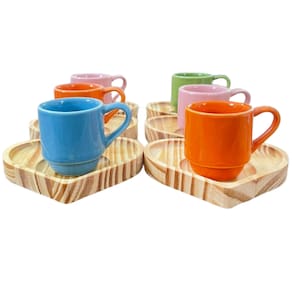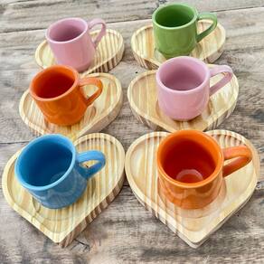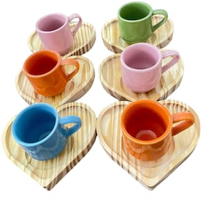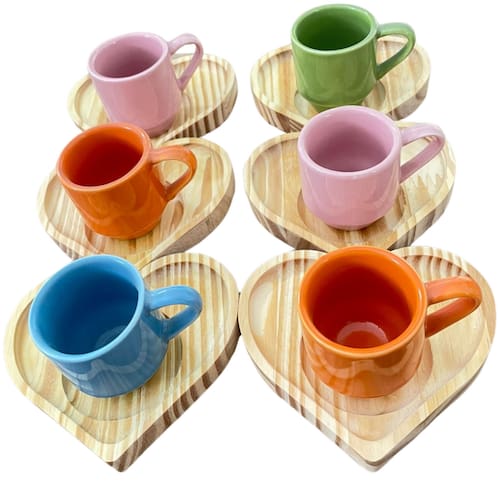 Jogo 6 Xicaras Café 80ml Empilháveis com pires coração - Porcelana ColoridaPeças de porcelana feitas de material de alta qualidade, queimados em alta temperatura, o que os torna fortes, resistentes e com alto brilho, e deixa qualquer ambiente mais bonito e moderno. A porcelana tem uma enorme vantagem sobre outros materiais, pois é fácil de limpar e não absorve cheiro, o que deixa a peça e o ambiente livre de mal cheiro.São resistentes ao forno e micro-ondas. Cor multicoloridaCapacidade 80ml OBS: Por se tratar de madeira de pinus natural, entre os pires podem existir pequenas variações na tonalidade das cores da madeira.Pode haver variação de tonalidade entre as peças devido a diferentes lotes de queima.Embalagem contêm 12 peças (6 xicaras x 6 pires) Marca: Antilope Decor Porcelanas