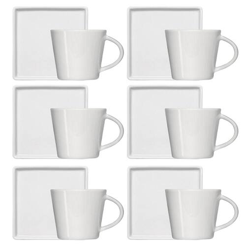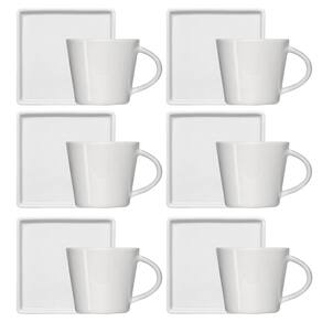 Jogo 6 Xícaras de Café 90ml em Porcelana com Píres Quadrado Branca Germer.