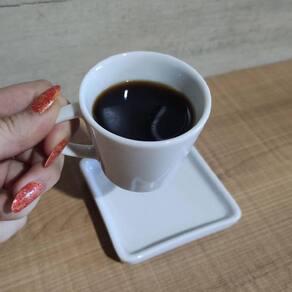 Jogo 6 Xícaras de Café 90ml em Porcelana com Píres Quadrado Branca Germer