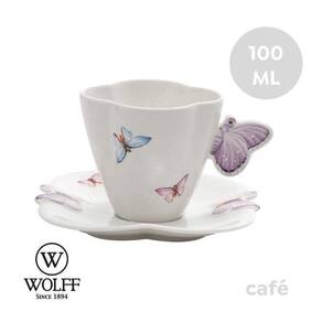 Xícara de Café em Porcelana com Pires Borboletas 100ml Wolff