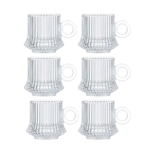 Jogo 6 Xícara de Café Caneca Vidro Robusta Lines 85ml Em Casa Tem