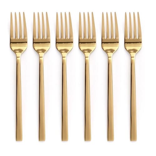 Jogo 6un garfos sobremesa inox dourado Luxe gold mesa posta Jogo 6un garfos sobremesa inox dourado Luxe gold mesa posta