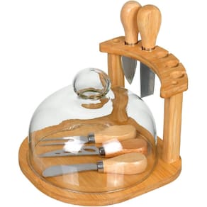 JOGO 7PÇS QUEIJO Altura: 18,5 cm Largura: 18 cm Profundidade: 18 cm Peso: 0,63 Kg Diâmetro do Corpo: 15,9 cm Material: Vidro/Bambu Cor: Transparente/Marrom