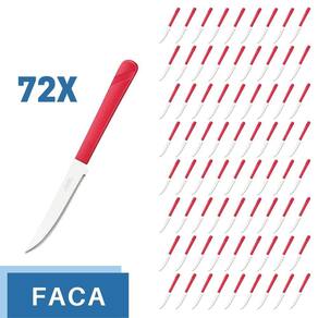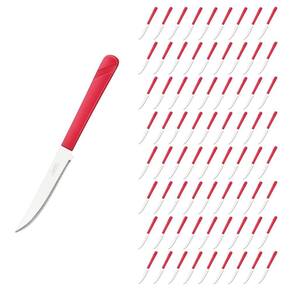Conjunto de Facas As facas de mesa da linha Luna são um conjunto elegante e funcional para qualquer mesa de jantar. Com um cabo vermelho vibrante feito de plástico de alta qualidade, estas facas são confortáveis de segurar e fáceis de identificar em meio a outros utensílios de mesa. O aço inox de alta qualidade das lâminas garante que elas permaneçam afiadas por um longo tempo, enquanto o design elegante torna as facas uma adição atraente à sua coleção de utensílios de cozinha.