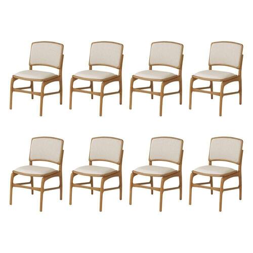 AS IMAGENS SÃO MERAMENTE ILUSTRATIVAS E PODEM SOFRER VARIAÇÕES DE COR E PEQUENOS DETALHES DE ACORDO COM O SEU MONITOR, ILUMINAÇÃO DO AMBIENTE E ATÉ MESMO A SUA PERCEPÇÃO VISUAL.Jogo 8 Cadeiras de Jantar FlorenÃa em Madeira Jequitibà Natural Encosto em Tecido Premium Linho Bege