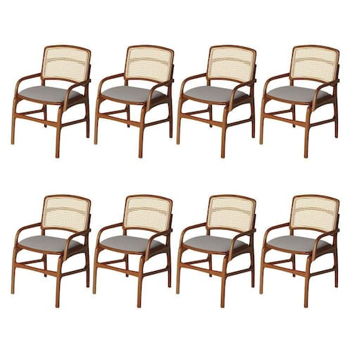 AS IMAGENS SÃO MERAMENTE ILUSTRATIVAS E PODEM SOFRER VARIAÇÕES DE COR E PEQUENOS DETALHES DE ACORDO COM O SEU MONITOR, ILUMINAÇÃO DO AMBIENTE E ATÉ MESMO A SUA PERCEPÇÃO VISUAL.Jogo 8 Cadeiras de Jantar FlorenÃa Estrutura em Madeira Jequitibà Terra BraÃo Encosto Palha Linho Cinza
