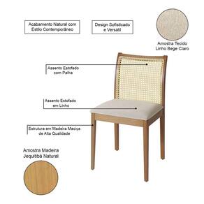 AS IMAGENS SÃO MERAMENTE ILUSTRATIVAS E PODEM SOFRER VARIAÇÕES DE COR E PEQUENOS DETALHES DE ACORDO COM O SEU MONITOR, ILUMINAÇÃO DO AMBIENTE E ATÉ MESMO A SUA PERCEPÇÃO VISUAL.Jogo 8 Cadeiras de Jantar Juliana Jequitibà Natural em Madeira MaciÃa Encosto Palha Linho Bege