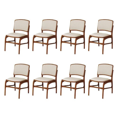 AS IMAGENS SÃO MERAMENTE ILUSTRATIVAS E PODEM SOFRER VARIAÇÕES DE COR E PEQUENOS DETALHES DE ACORDO COM O SEU MONITOR, ILUMINAÇÃO DO AMBIENTE E ATÉ MESMO A SUA PERCEPÇÃO VISUAL.Jogo 8 Cadeiras para Jantar FlorenÃa Madeira Jequitibà Terra Encosto e Assento em Tecido Linho Bege