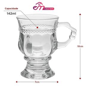Caneca de Café 117ml Hanover Vidro Cristalino Transparente Xícara Em Casa Tem