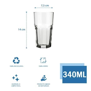Jogo com 8 Copos De Vidro 340ml Bristol Nadir Figueiredo