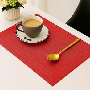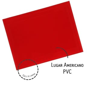 A textura em PVC confere aderência, reduzindo o risco de deslizamento de utensílios durante as refeições. A coloração vermelha, combinada ao design retangular, proporciona um toque visual na composição da mesa, adequando-se a diferentes estilos de decoração. Sua manutenção se resume à limpeza com um pano úmido, dispensando a necessidade de lavagem e facilitando a rotina.