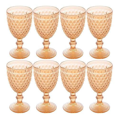 Jogo 8 Taças de Vidro Bico Abacaxi Cor Âmbar Metalizado para Água Vinho Lyor 325ml