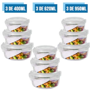 Jogo 9 Pote Vidro Hermético Marmita Kit Redondo 3 Tamanhos