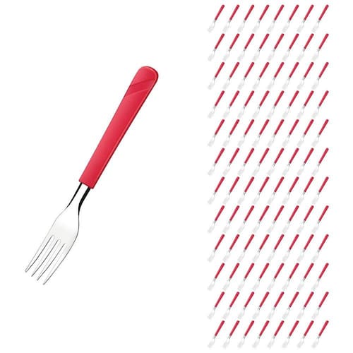 Conjunto de Garfos Os garfos de mesa da linha Luna são um conjunto elegante e funcional para qualquer refeição. Com um cabo vermelho vibrante feito de plástico de alta qualidade, esses garfos são confortáveis de segurar e fáceis de identificar em meio a outros utensílios de mesa. O aço inox das lâminas garante que elas permaneçam brilhantes por um longo tempo, enquanto o design elegante torna os garfos uma adição atraente à sua coleção de utensílios de cozinha.