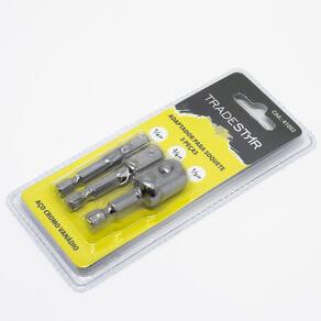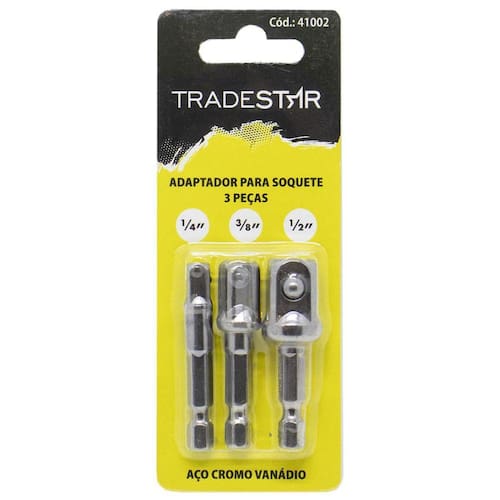 Jogo Adaptador Para Soquetes Com 3 Pçs Cromo Vanadio Tradestar O Jogo Adaptador para Soquetes com 3 Pçs Cromo Vanádio da marca Tradestar é o complemento perfeito para suas ferramentas. Fabricados em material cromo vanádio de alta qualidade, esses adaptadores garantem durabilidade e resistência em todas as aplicações. Composto por 3 peças 1/4, 3/8 e 1/2 , o jogo oferece adaptadores de diferentes tamanhos para atender às suas necessidades. Eles permitem uma conexão rápida e segura entre soquetes e ferramentas elétricas, proporcionando versatilidade em seus projetos. Os adaptadores Cromo Vanádio Tradestar são projetados para um encaixe preciso e seguro, evitando deslizamentos e garantindo um trabalho eficiente. Com eles, você terá a confiança de contar com ferramentas de qualidade superior. Indicado para uso em parafusadeira ou furadeira com ou sem impacto, permitindo a adaptação para uso em soquetes com encaixe quadrado de 1/4, 3/8 e 1/2. Torque máximo: 71 N.M. A marca Tradestar é reconhecida por sua qualidade e excelência no mercado de ferramentas. Quantidade por embalagem 1 Jogo Garantia 90 dias após a compra. Imagens meramente ilustrativas As tonalidades da cor do produto podem sofrer alterações de acordo com a tela que estiver usando para visualização. Marca: Tradestar