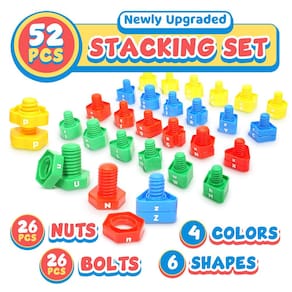 Ótimo auxiliar de aprendizagem de alfabeto! O jogo de combinação de alfabetos é pouco desafiador, pois não é autocorreção. Uma vez que as cabeças e as caudas se misturam e se encaixam umas nas outras. Qualquer uma das cabeças se encaixa em qualquer uma das caudas. Como isso funciona? Super fácil! Basta separá-los e encontrar a caixa correspondente da letra que combina; Ou espalhe todas as peças na mesa e invente palavras simples (Sou, Para, Então, etc.). More Than Letters Learning Esses brinquedos empilháveis também estimulam a cognição das cores e formas das crianças. Comece do zero! Domine facilmente o alfabeto combinando a maiúscula com as letras minúsculas! O tamanho adequado para crianças com a parte central lisa do conector o torna perfeito para mãos pequenas segurarem, combinarem e desmontarem, o que ajuda a fortalecer os músculos ao empurrar e puxar cada peça. atraentes ajudam a desenvolver habilidades e ajudam na identificação de cores. Mantenha a atenção da criança; Jogo de manipulação ideal para melhorar a motricidade fina. Habilidades em salas de aula, auxílio à educação domiciliar e ferramenta de creche. O pacote inclui: 54 peças de brinquedos alfabéticos Nuts and Bolts 1 sacola de armazenamento 1 cartão comemorativo 1 cartão de agradecimento - ?? Brinquedos empilháveis Montessori educacionais para crianças. 52 peças. Diferente de outros brinquedos comuns de empilhamento de porcas e parafusos, este conjunto de brinquedos Montessori pré-escolares para crianças pequenas combina as funções de aprendizado de letras ABC e desenvolvimento de habilidades motoras finas. Eles não apenas ajudam as crianças a aprender alfabetos, cores e formas, mas, ao combiná-los, podem ajudar as crianças a desenvolver habilidades motoras finas. Ferramenta de aprendizado incrível para crianças pequenas. - ?? Conjunto divertido de combinação de alfabetos - Este conjunto de correspondência de alfabetos vem em um pacote econômico com 26 letras em 52 peças de porcas e parafusos no total. Cada conjunto de porcas e parafusos tem letras maiúsculas e minúsculas. As crianças descobrem habilidades alfabéticas totalmente novas quando misturam, combinam e identificam esse conjunto de 26 conjuntos de porcas e parafusos coloridos! Deixe as crianças aprenderem enquanto brincam com esses brinquedos. - ?? Brinquedos multifuncionais para motores finos - Brinquedos para aprender a classificação de cores, classificação de formas e aprender o alfabeto ABC. Este brinquedo empilhável é um brinquedo básico de aprendizagem pré-escolar para crianças, brinquedos de aprendizagem de alfabeto para crianças pequenas e jogos de aprendizagem de combinação de cores e formas para crianças. As crianças podem desenvolver seu senso de tato e visão tocando e observando esses números e formas. Este incrível conjunto de brinquedos educativos pode ajudar os bebês a crescerem melhor na educação para o desenvolvimento da primeira infância. - ?? Durável e seguro para o aprendizado precoce. Feito de material durável. Os brinquedos empilháveis são atividades ideais de aprendizado no jardim de infância, auxílio ao ensino doméstico e ferramenta de creche. Esses brinquedos Montessori são elegantes e duráveis, com o tamanho certo, especialmente projetados para crianças com mais de 3 anos. ajudam a desenvolver habilidades de identificação de cores e ajudam a manter a atenção da criança. - ?? Presente de ensino doméstico para crianças pequenas: cores brilhantes e uma bela bolsa de armazenamento o tornam atraente e portátil para meninos e meninas. O brinquedo que combina alfabetos seria um presente ideal para meninos e meninas em qualquer ocasião, aniversário, enchedor de meias de Natal, enchedor de cestas de Páscoa, enchedor de sacolas de guloseimas e prêmios em sala de aula. Ou para ser uma grande ajuda para a pré-escola/educação domiciliar, creche.