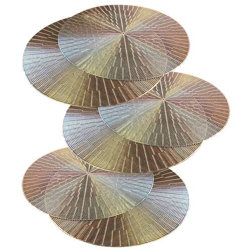 Jogo Americano 10 Peças Mesa Posta Mesa Redondo Linha Luxo Tamanho Grande Modelo Egípcio em PVC Cor: Dourado Especificações: Jogo Americano: Confeccionado em PVC, que garante mais qualidade e durabilidade ao produto