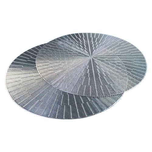 Jogo Americano 2 Peças Mesa Posta Mesa Redondo Linha Luxo Tamanho Grande Modelo Egípcio em PVC Cor: Prata Especificações: Jogo Americano: Confeccionado em PVC, que garante mais qualidade e durabilidade ao produto