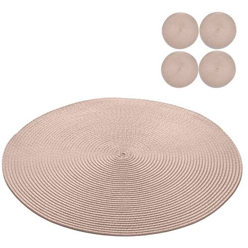 Jogo Americano 4 Lugares Redondo Sousplat Mesa Posta 38Cm - Palha