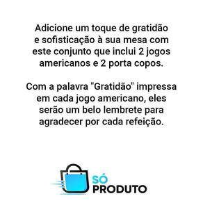 Adicione um toque de gratidão à sua cozinha com este Jogo Americano com 2 Porta-Copos. Ideal para café da manhã ou lanche, este conjunto elegante é perfeito para complementar sua decoração.