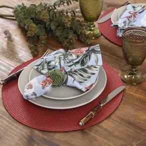 Jogo Americano Copa E Cia 6 Peças Luna Blood Jogo Americano Copa e Cia 6 Peças Luna Blood - Características Gerais do Produto: - Composição: 75% Polipropileno (Plástico) e 25 % Poliéster. - Detalhes: Flexível.; Kit Contém 06 peças.; São práticas e versáteis - Cuidados: Evitar contato com objetos cortantes ou superaquecidos.; Não amassar; Não torcer ou dobrar totalmente o produto.; Não utilizar solventes, abrasivos ou alvejantes.; Limpar manualmente com pano úmido e detergente neutro. - Dimensões (cm): Diâmetro: 38 cm Acompanha o produto: - 6 Peças de Jogo Americano Garantia: - Sem Garantia