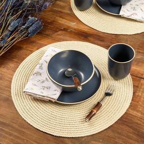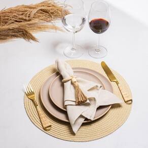 Jogo Americano Copa E Cia Avulso Arlo Palha Jogo Americano Copa e Cia Avulso Arlo Palha - Características Gerais do Produto: - Composição: 80% Fibra de Celulose e 20% Poliéster - Detalhes: Apesar de sua Composição ser a Base de Papel, o Produto não é Descartável.; Peça Vendida de Forma Individual.; Design Exclusivo Copa&Cia.; Armazenar o produto aberto e na horizontal; As cores podem sofrer pequenas alterações de cor, variando de monitor para monitor.; Os objetos que ambientam as fotos não acompanham o produto.; As fotos produzidas são apenas como sugestão de uso com as demais peças da coleção. - Cuidados: Armazenar em local seco e arejado.; Limpar o Produto Apenas com Pano Levemente Umedecido; Evitar contato com objetos cortantes ou superaquecidos.; Não molhar; Não amassar; Não torcer ou dobrar totalmente o produto.; Não utilizar solventes, abrasivos ou alvejantes.; Manter o produto na horizontal - Dimensões (cm): Diâmetro: 38 cm Acompanha o produto: - 1 Peça de Jogo Americano Garantia: - 7 dias/30 dias contra defeito de fabricação