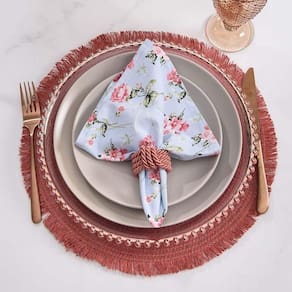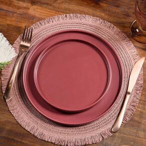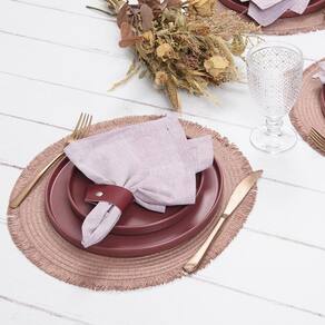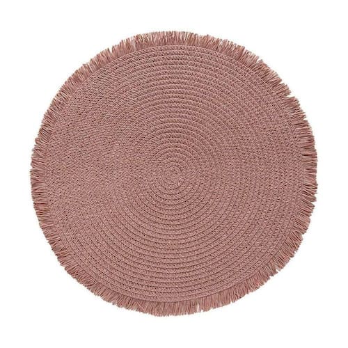 Jogo Americano Copa E Cia Avulso Lana Rosê Jogo Americano Copa e Cia Avulso Lana Rosê - Características Gerais do Produto: - Composição: 100% Fibra de Papel - Detalhes: Flexível.; Possui Detalhe com Franjas.; Apesar de sua Composição ser a Base de Papel, o Produto não é Descartável.; Armazenar o produto aberto e na horizontal - Cuidados: Limpar Manualmente, Armazenar em Local Seco e Arejado.; Não Torcer, Amassar, Dobrar ou Molhar Totalmente o Produto.; Não Utilizar Solventes ou Abrasivos.; Limpar o Produto Apenas com Pano Levemente Umedecido; Evitar contato com objetos cortantes ou superaquecidos. - Dimensões (cm): Diâmetro: 38 cm Acompanha o produto: - 1 Peça de Jogo Americano Garantia: - Sem Garantia
